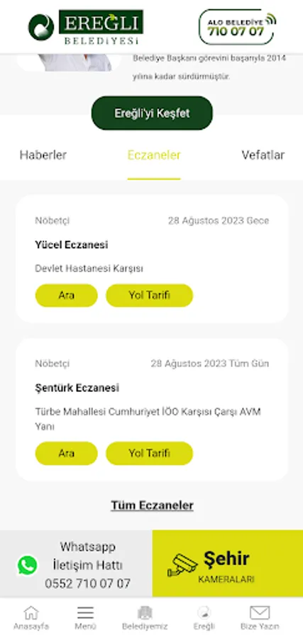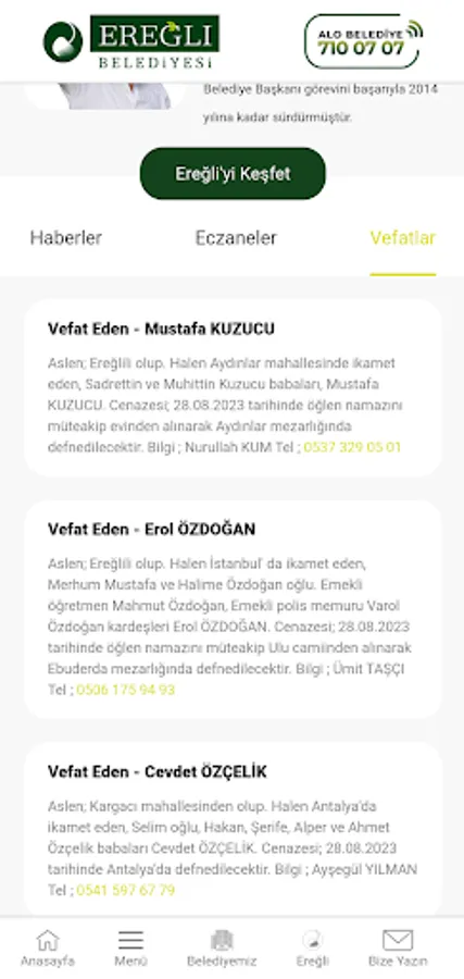 If you open the notifications, you can learn about the funerals and pharmacies in our municipality on a daily basis.