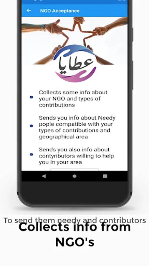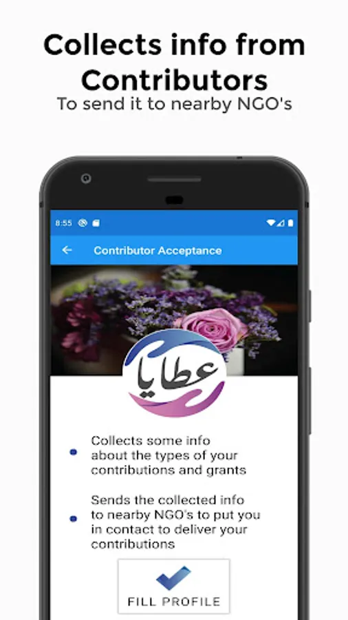 2) Send the data of the contributors who are willing to help to the nearby NGO's