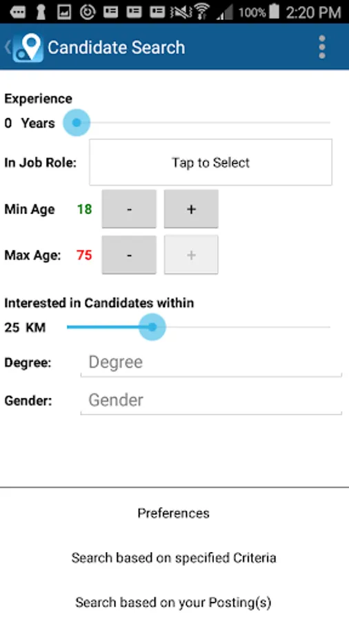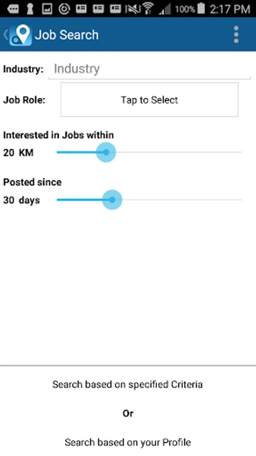 The Job Seeker can search for jobs that match his/her profile within a specified distance, and Apply for any job, and the App will notify the Employer of any Job Applicant.
