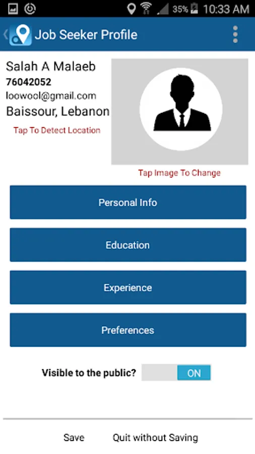 Any Job Seeker can create a profile specifying Name, Photo, Location, Contact Info, Education Level/Obtained Certificates, Gender, Marital Status, Birth Date, Previous Experiences, Preferred Working Months, Days, Hours, Languages, Industries and other info by including a PDF CV file.