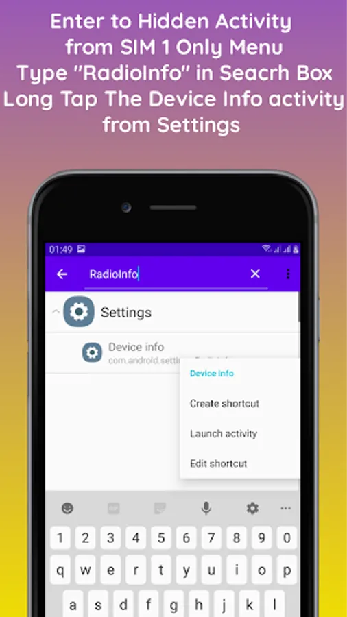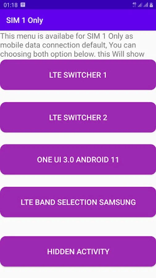 - Hidden Activity on the SIM 1 Only menu: this menu displays all installed application activities and system applications.