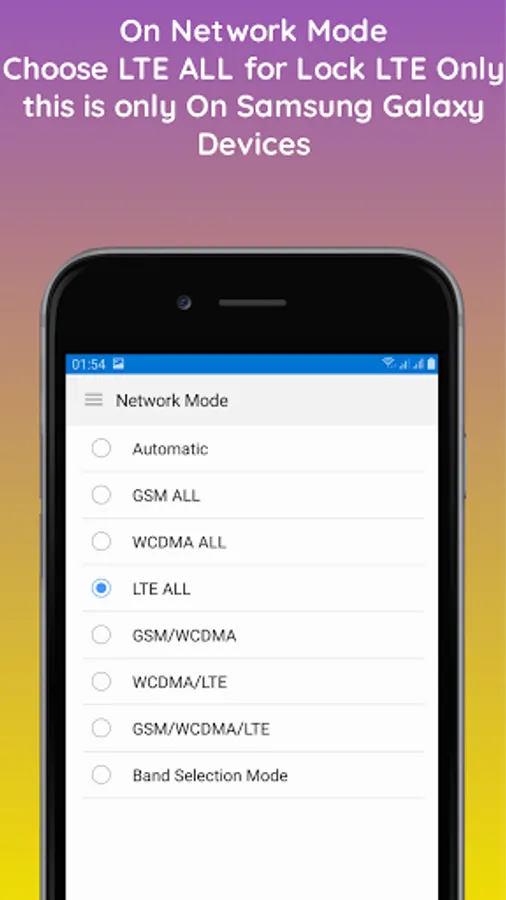 1. Network Mode: to select network mode select LTE All to Lock LTE Only
