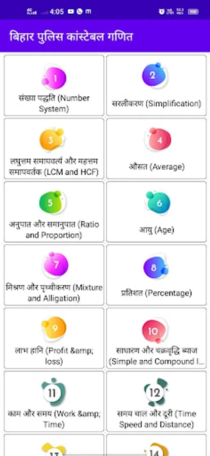 BIHAR POLICE CONSTABLE TAIYARI, preparatory app includes the following topics-