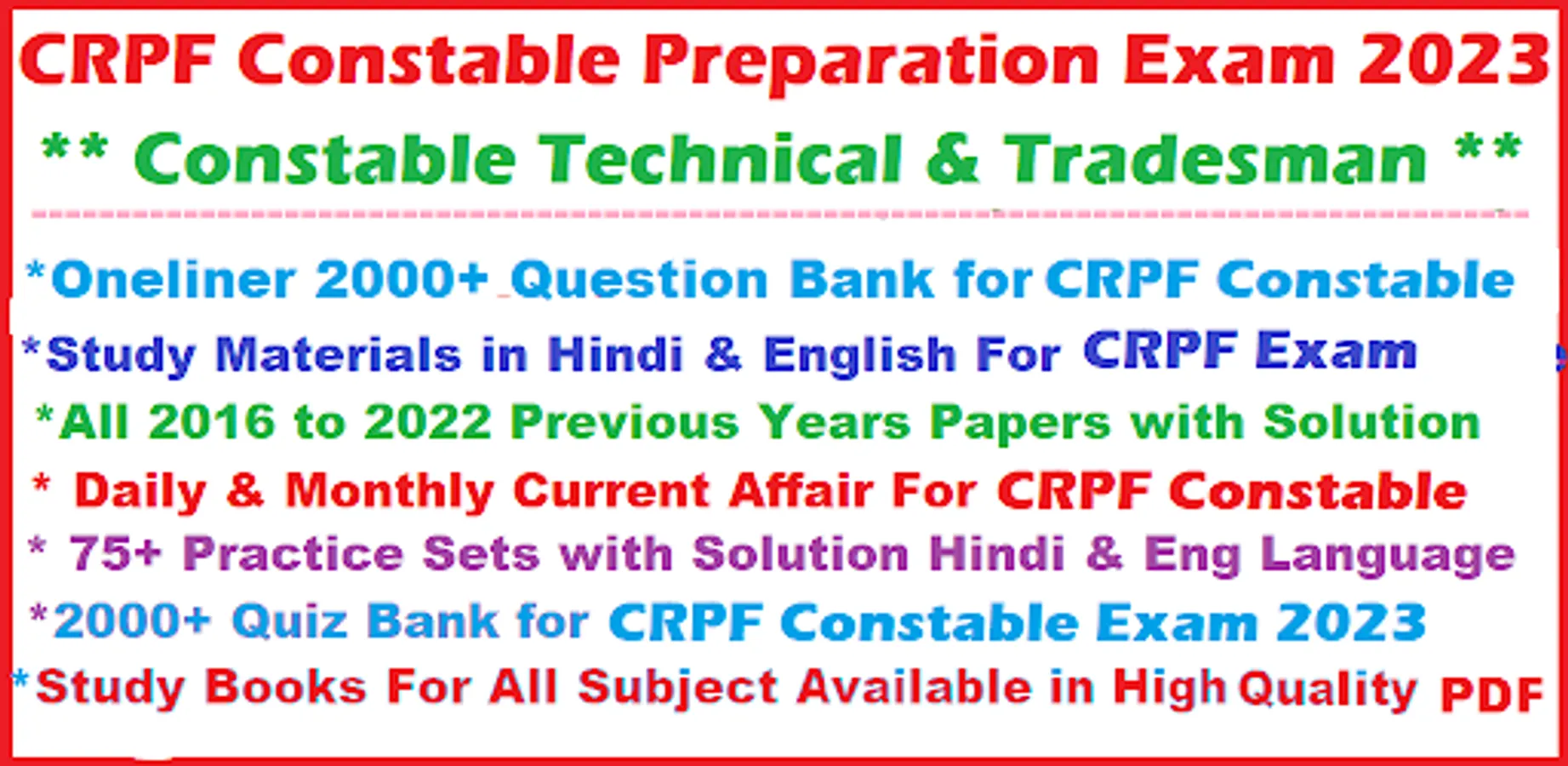 CRPF Constable ASI Steno & Head Constable HC Exam 2023 Mock Tests or Practice Sets &Previous Years Solve Papers with CRPF Study Kits Preparation App
