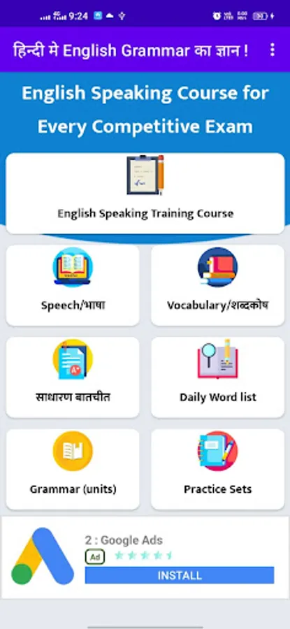 This English Speaking Course in hindi App also covers English Grammar, Pronunciation, Conversation and Vocabulary. This Application is suitable for all the Levels of Learner Beginner, Medium and Advance the same time.