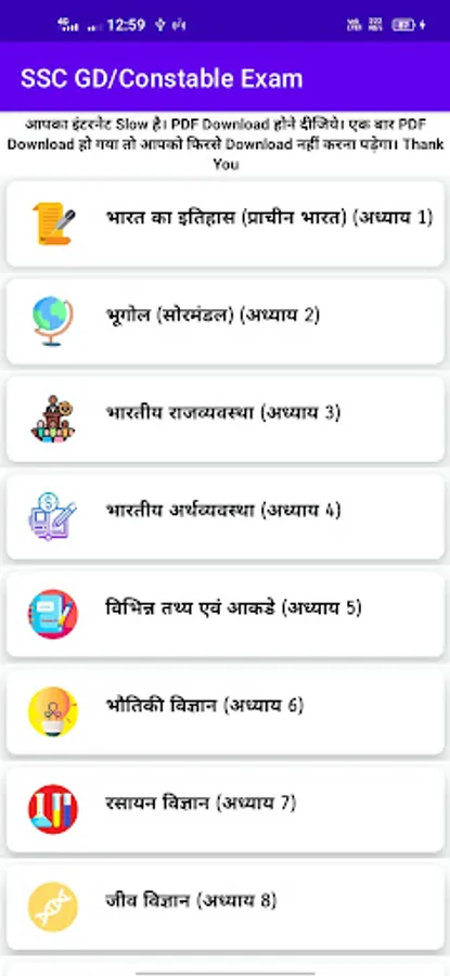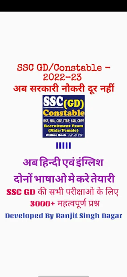 SSS has announced for conduct the of SSC Constable/GD Exam. The complete preparation package for SSC Constable GD Exam in Hindi is provided in this app with previous papers of SSC Constable GD Exam and Other SSC Exams.