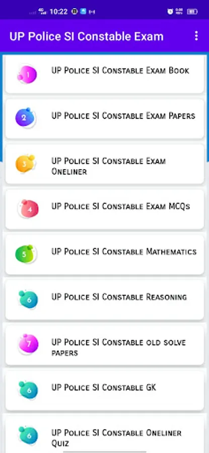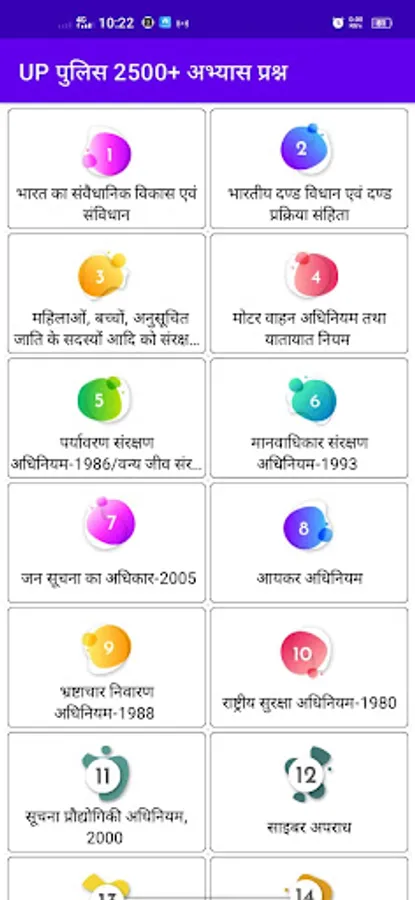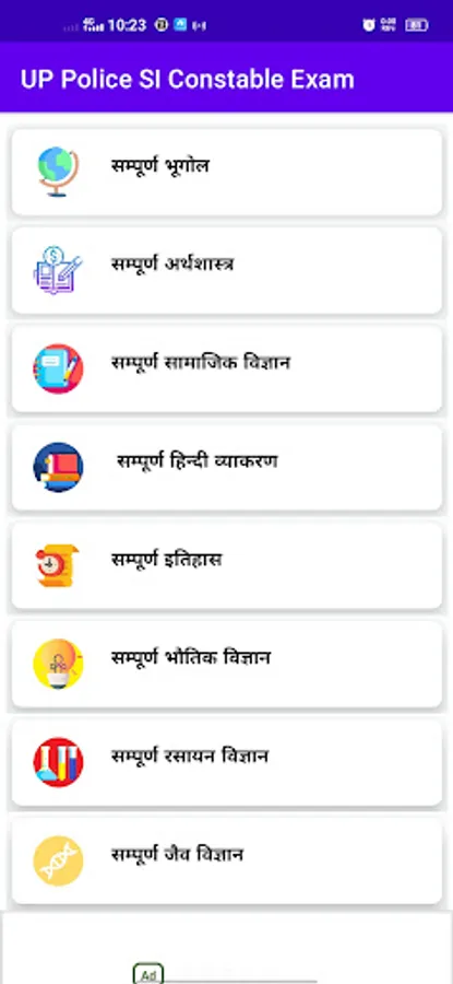 UP SI EXAM PREPARATION IN HINDI, the preparatory app includes the following topics-
