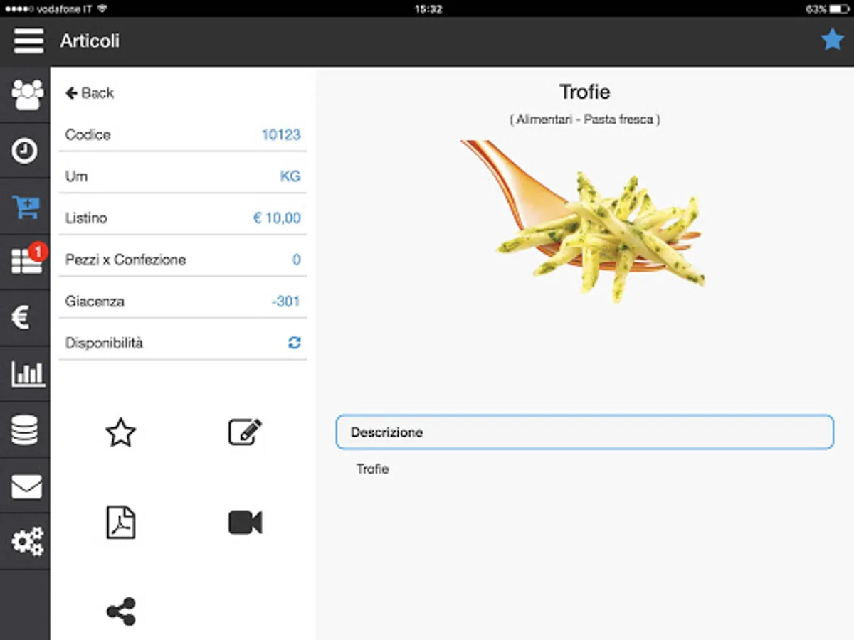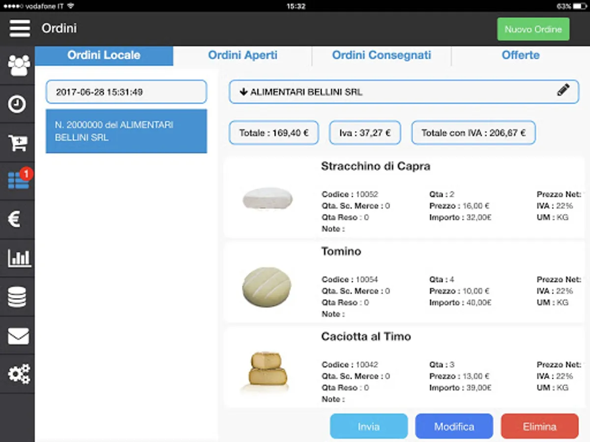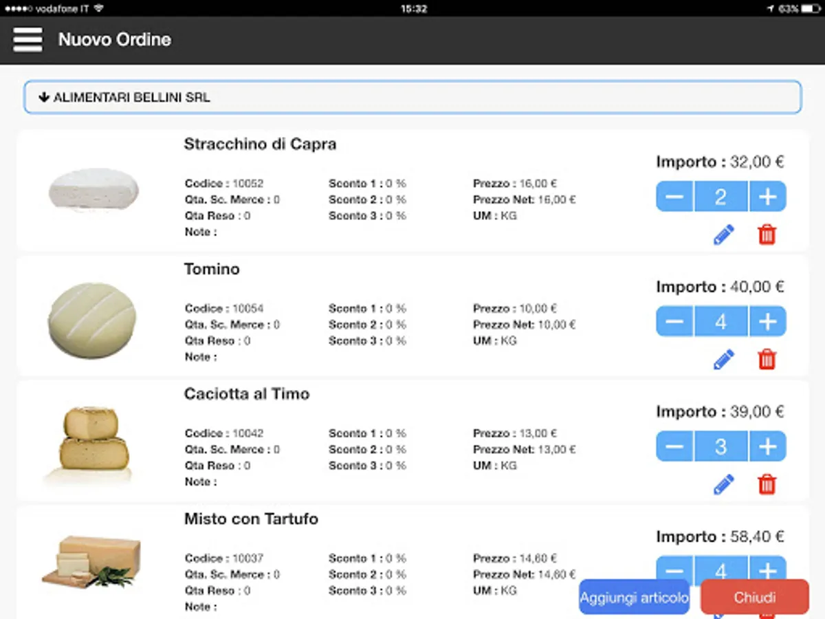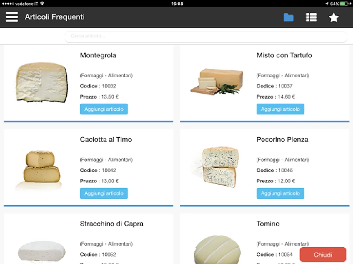 - added value of the app is the usability of the data and the ability to save new orders even without connectivity, in fact all the contents are stored on the tablet.