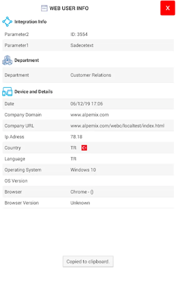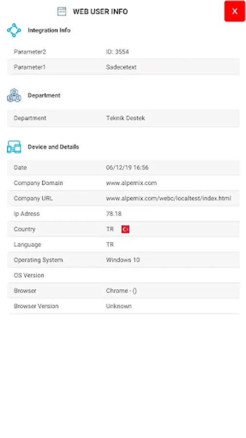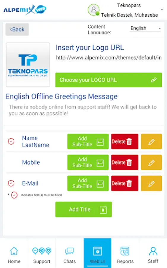 While the support staff is online, you can allow the user to fill in certain information before starting the correspondence.