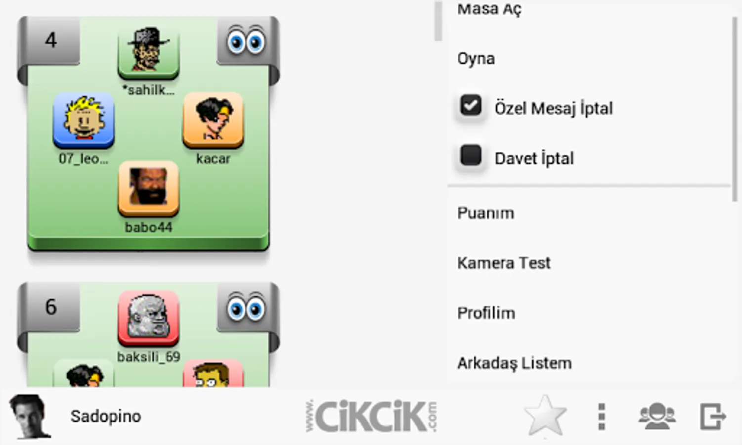 With the 'Play online' option, you can play mutually with thousands of users of cikcik.com over the internet.