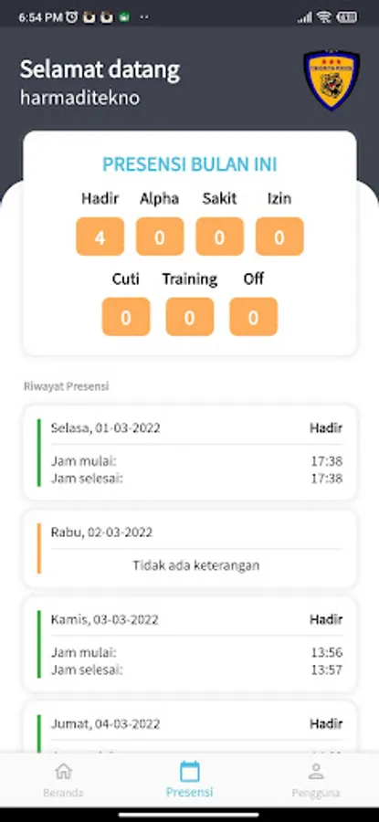 Internal application for attendance needs at PT Tekno Putra Perkasa, equipped with attendance features and tracking of the closest personnel