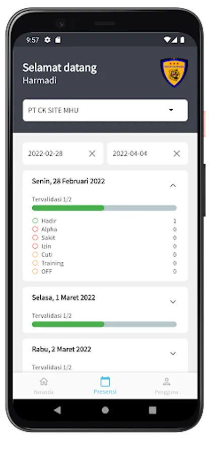 Internal application for monitoring attendance reports, as well as overall financial reports at PT Tekno Putra Perkasa