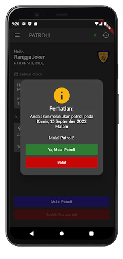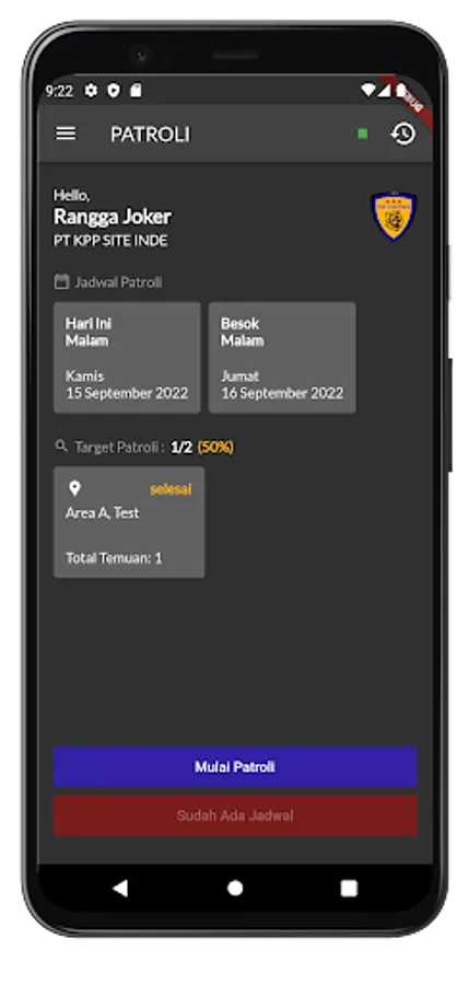 Regional patrol application for security officers at PT. Tekno Mighty Son