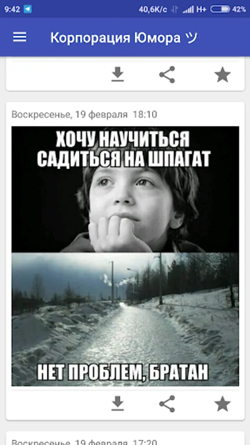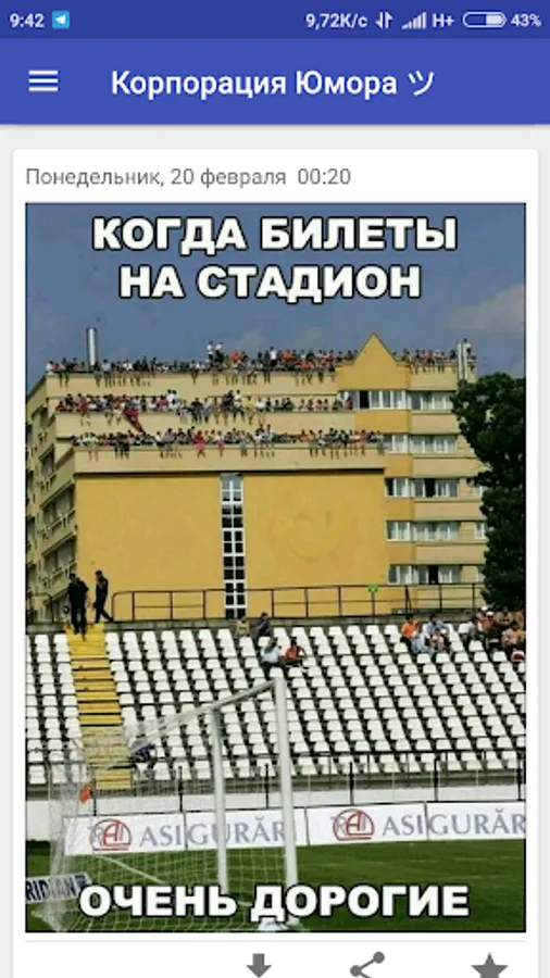 The application "Corporation Humor ツ" best collection of funny and materials that can be found in the social. networks. You can also set the recording to your favorites and share the photo with friends. In general, it obtained a permanent cycle of the best photos and video content on the Internet.
