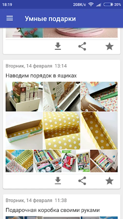 We lift the veil secrets of creating ideas from postcards to accessories, original gifts in different styles and all preferences - from scrapbooking to origami. Also, in our application, you will find a visual master classes on making beautiful things for the home and will be able to make an original gift with their own hands. We hope that thanks to our application you will be able to choose for themselves and their loved ones an unusual unique gifts.
