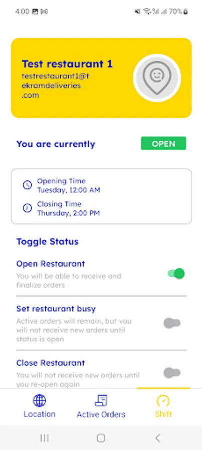 2. Intuitive Restaurant Status Control: Take full control of your restaurant's status and availability. Customize business hours and ensure customers are informed with real-time updates.