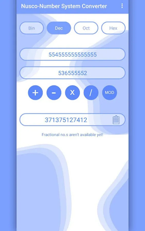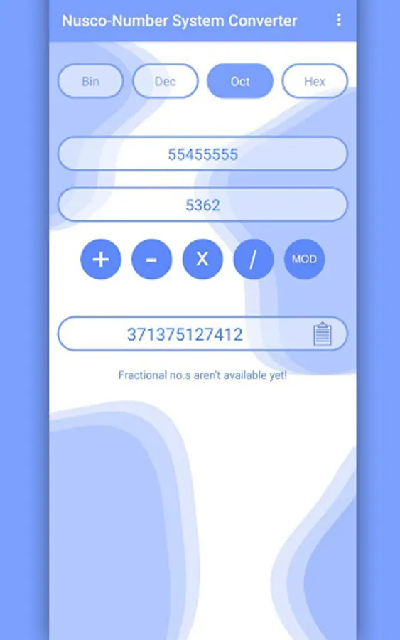 A converter and calculator all integrated into one application. This application is best suited for students in engineering, computer science and IT folks. A smooth, functional, minimal app that will get your work done in seconds. The application has three sections, one for conversions (any to any), one for calculations (any number system) and a quick chart in case you want to calculate it yourself or learn it yourself.
