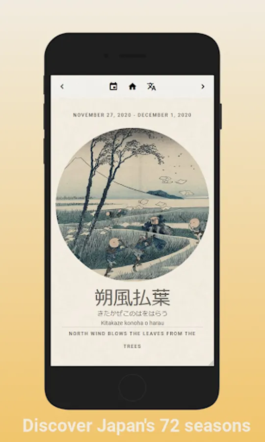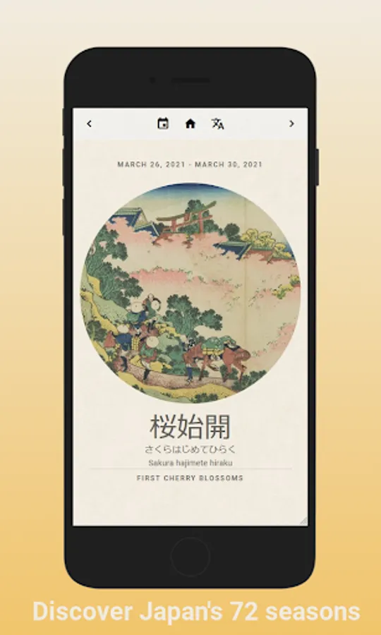 The application shows you which season is currently running. Each season is represented with a sublime woodblock print of the themes of the current season.