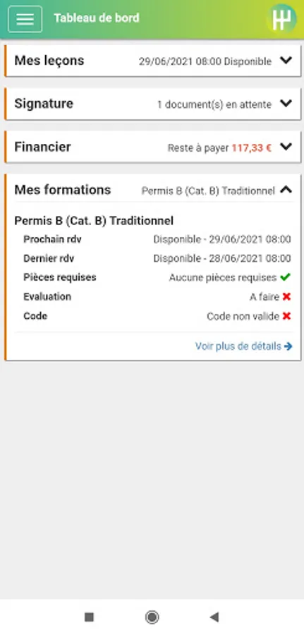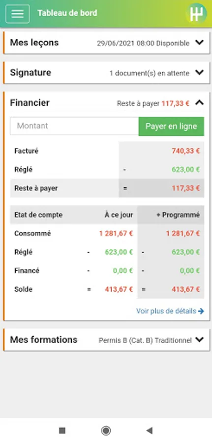Access to the follow-up of your courses, planning, administrative documents, invoicing.