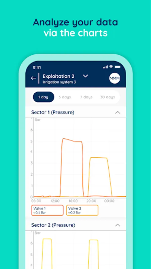 - Its intuitive interface is easy to use: enter your data from your smartphone, locate problem areas with alerts and follow your schedules directly from the app.