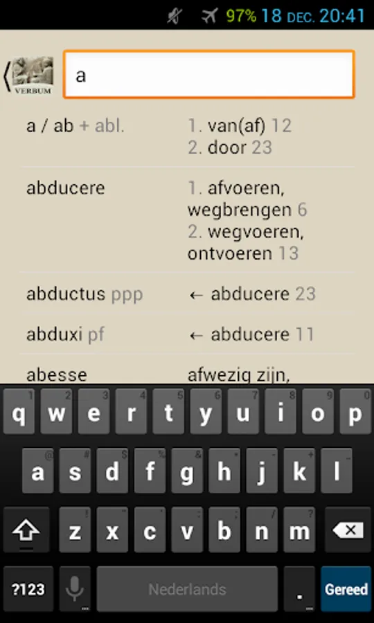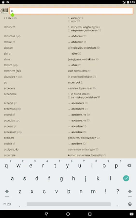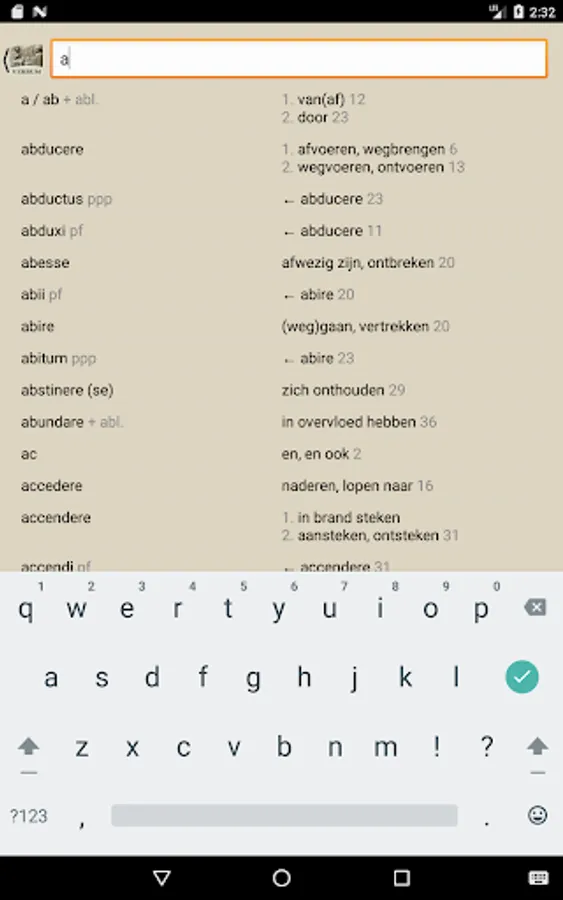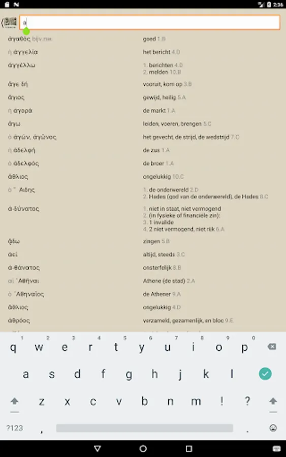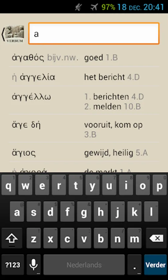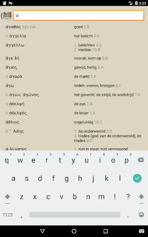 With Verbum you can easily find the meaning of Greek and Latin words look from the teaching methods of Publishing Hermaion. Choose a book and start typing the Greek or Latin word. Soon you will see the possible translations appear, indicating the section in which the word appears for the first time.