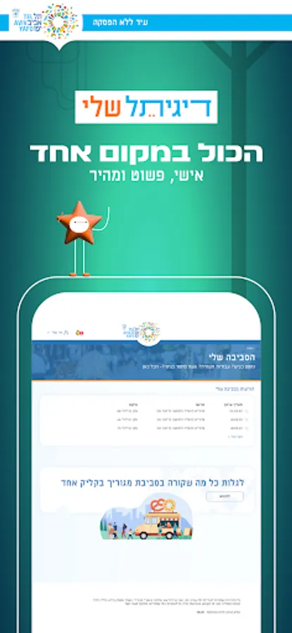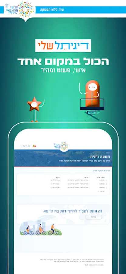 My digital - everything in one place! The gateway to all the information, benefits and digital services of the Municipality of Tel Aviv-Yafo, personalized for each and every resident of the city