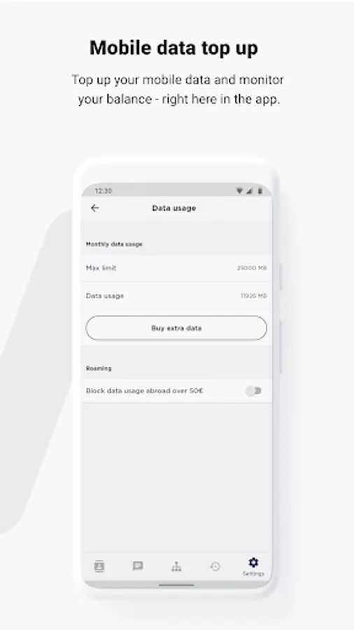 GPS position - Report your GPS position to the operator and other colleagues. If you are a mobile customer you can check your data usage (in Sweden and abroad), your APN settings, and handle your data roaming usage. All colleagues and contacts are kept updated in the phones built in contact book so you can always see who's calling without the need to add the person to your contact book.
