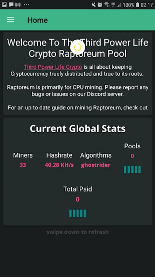 This app is a tool for you to monitor your statistics in the Third Power Life pool. Not a wallet or a miner