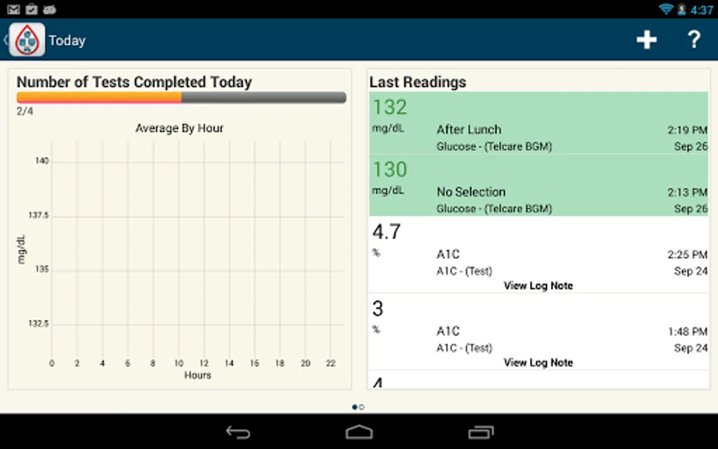 You can even attach a note to your entries. With a dedicated “Today” section, you can view your real-time progress toward testing goals and most recent readings with the tap of a finger.