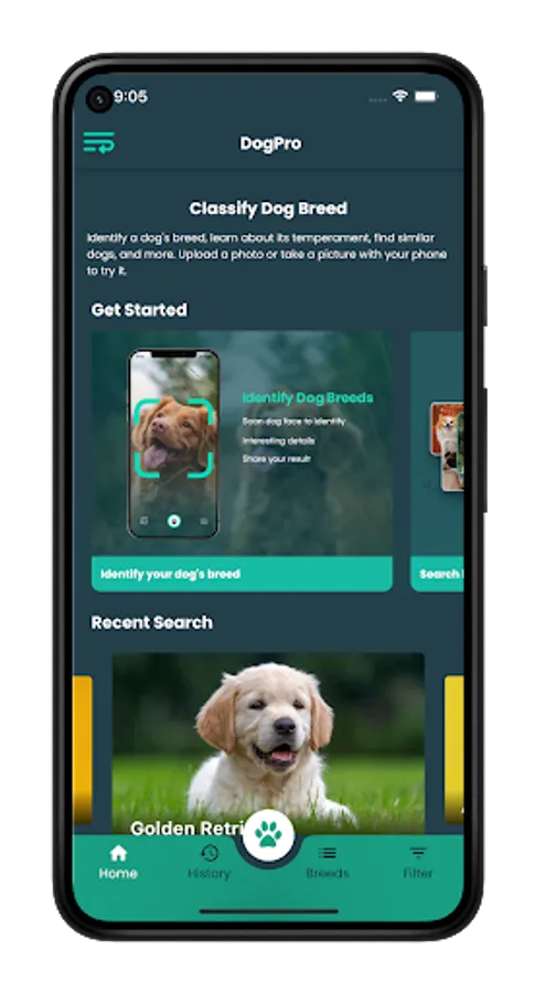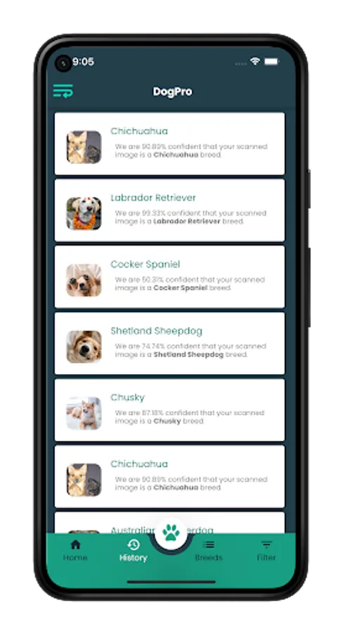 We have demonstrated that our state-of-the-art machine learning technology can identify dog breeds, even crossbreeds. Our smartphone-based app can currently classify dog breeds with significant accuracy from just a snapshot of your dog. Our prediction accuracy will increase with the images you provide us, and with time the model will support more dog breeds. It also gives you brief history about your dog breed. what they like what they dislike and also you can find a nearest pet clinic using this app. more exciting features are coming soon.