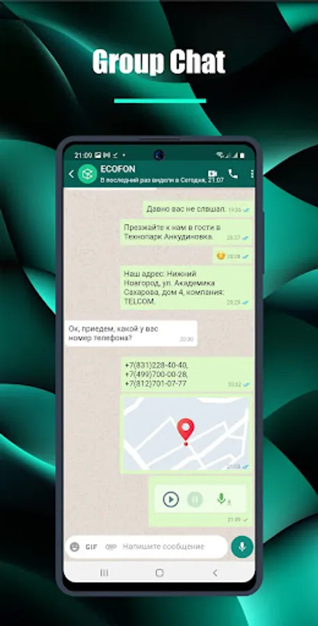 • AND MUCH MORE. Share geolocation, exchange contacts, set personal wallpapers and notification sounds, send messages to multiple contacts at the same time, and much more!