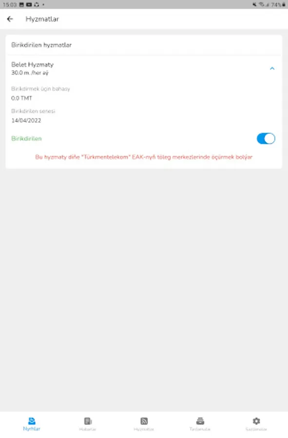 Programma "Turkmentelekom" EAK -nyň müşderileri üçin niýetlenendir. Hasabyňyzy barlaň, hyzmatlary birikdiriň, täze we häzirki bar bolan nyrhnamalar barada öwreniň, soňky täzelikleri okan.