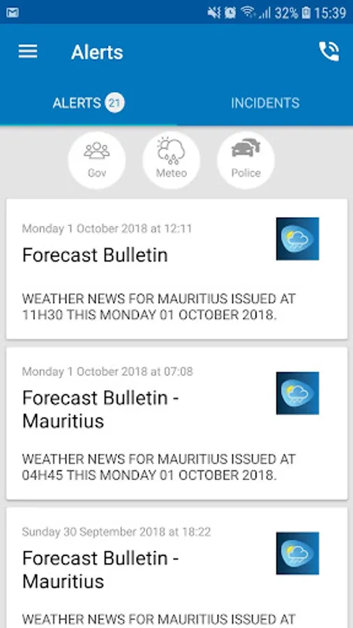 Get updated and real-time information on major incidents, calamities and weather information in Mauritius.
