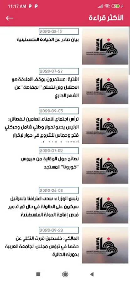 تطبيق لوكالة وفا التي أنشئت في نيسان عام 1972 تطبيقاً للقرار الصادر عن المجلس الوطني الفلسطيني في دورته الاستثنائية المنعقدة في القاهرة.