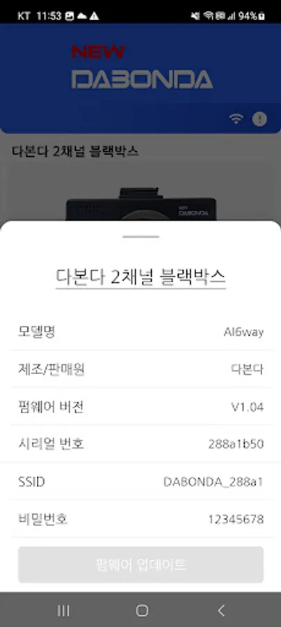 DABONDA with ModuVue connects the black box and smartphone via Wi-Fi to support real-time video check, recorded video playback and download, event video history check, black box settings and updates.