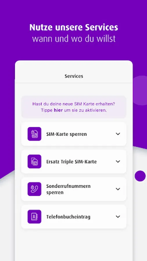 In addition, all network club services are available to you, such as the phone book entry or the blocking of your SIM card