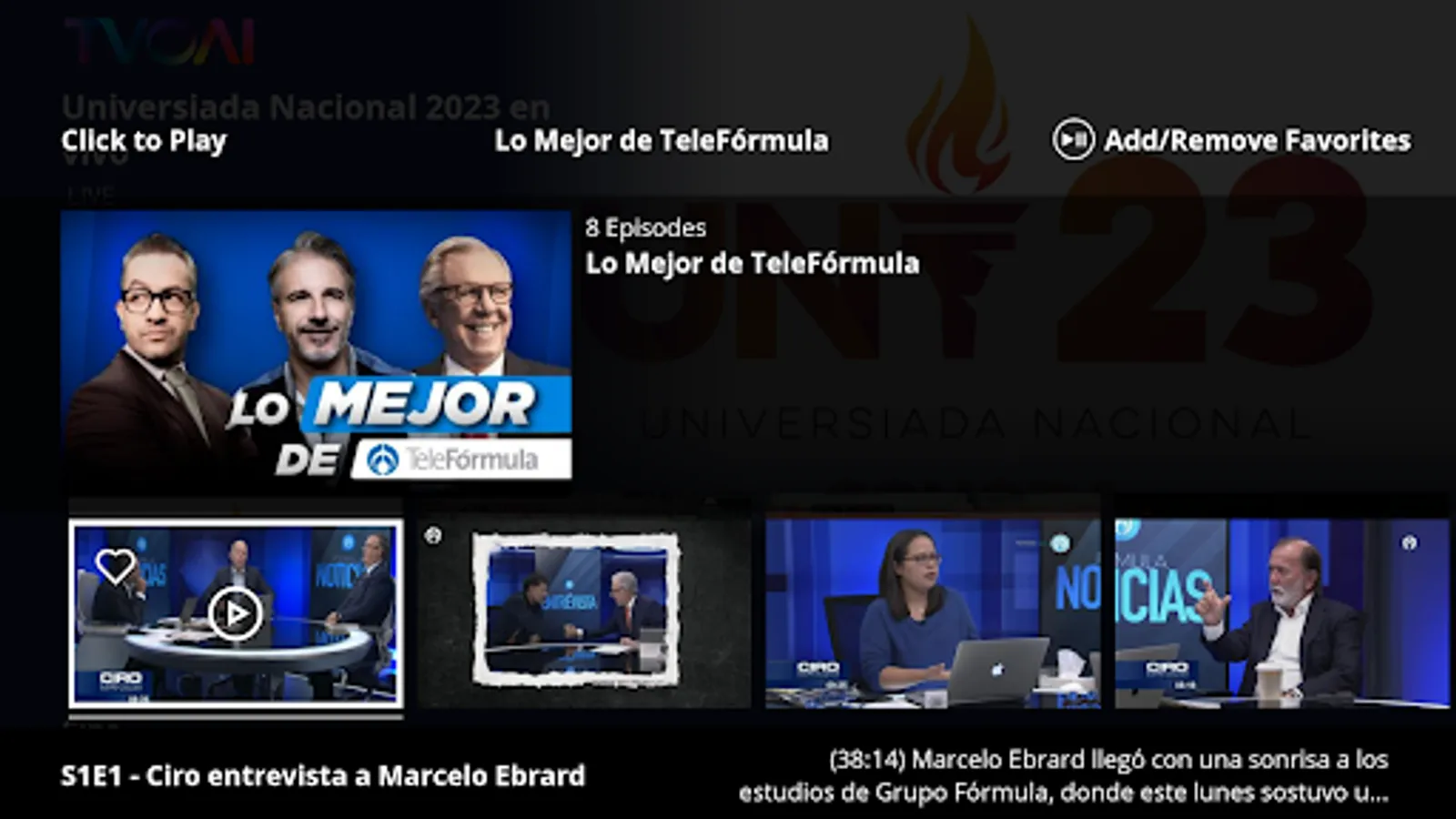 TVOAI es una app de streaming de Grupo Fórmula que te permite disfrutar de una variedad de contenido de alta calidad. Incluye entretenimiento, noticias en vivo, deportes, documentales impactantes y películas galardonadas.