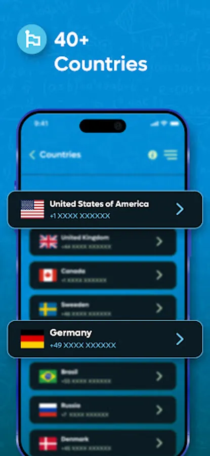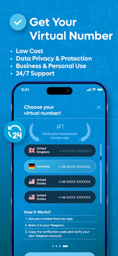 Our app provides you numbers from over 40+ countries, even if you don't have a local or landline phone number, you can get a US number or a virtual number from other countries within our app and use it to activate a Whatsapp, Whatsapp Business, Telegram, Gmail, Facebook, Snapchat, Instagram account!