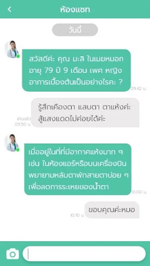 Applications in the Telehealth program increase the opportunity to reach staff and doctors. to seek preliminary health advice with Chat message service, which is a pilot service in Saraburi, Kamphaeng Phet provinces and provinces permitted by the Ministry of Public Health, which are in the service area of family doctor clinics Outside the service area will receive news within the app, talk to the doctor