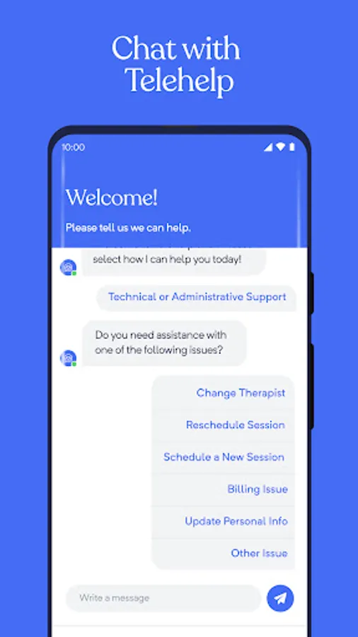 The problems you face are unique and specific to you, and your mental health care should be too! Telehelp uses an advanced matching algorithm that takes questionnaire answers provided by you to match you with a therapist licensed and trained in the specific issues you are experiencing. This matching algorithm takes into account your demographic information, background, and ultimately the issues you are facing to truly understand what you are experiencing. We know we cannot be right 100% of the time, and so if at any point you do not feel like your therapist is the right fit for you, you can change your therapist to someone who better meets your needs.