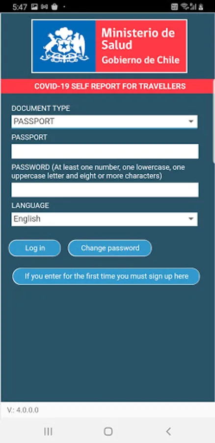 C19 Auto Reporte is an application used so that travelers from abroad who enter Chile through a Border Control, can report their health status and symptoms during the 14 days of follow-up defined by the Health Authority.