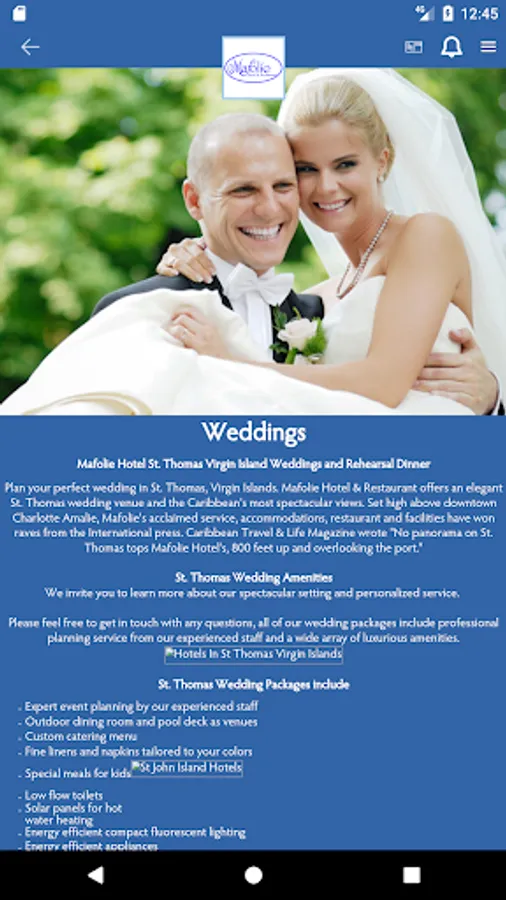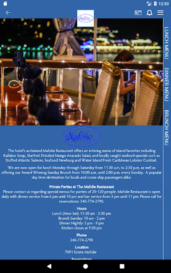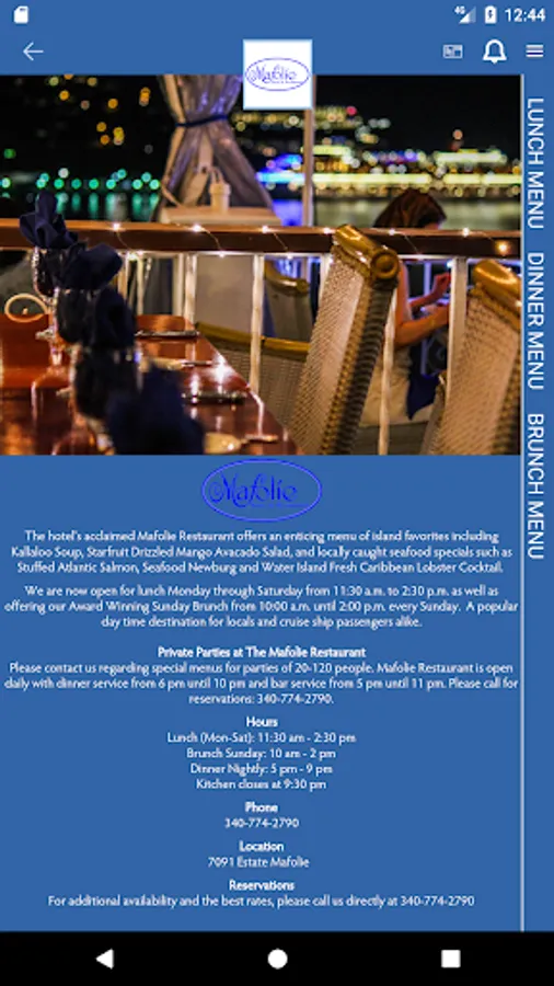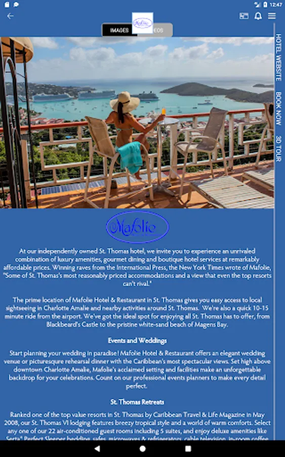 The new Mafolie Hotel & Restaurant Virtual Concierge Mobile universal mobile app showcases the Mafolie Hotel & Restaurant highlights, amenities and special deals and offerings as well as the finest local attractions and dining hotspots within the island of St. Thomas, U.S. Virgin Islands.