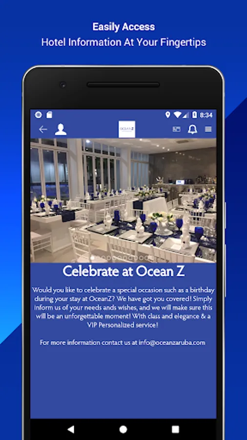 The Ocean Z Boutique Hotel concierge mobile app includes: