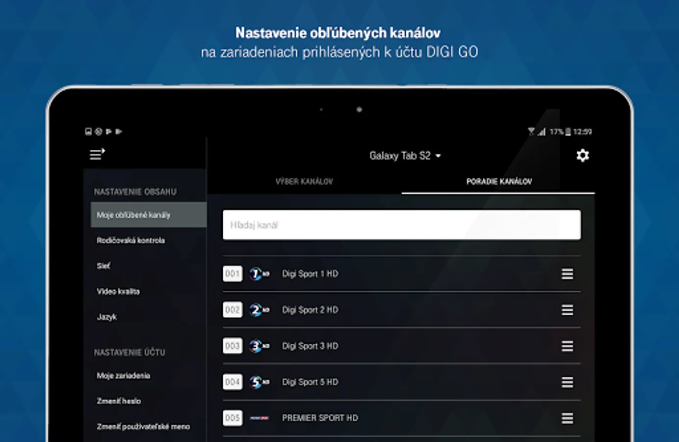If you are a DIGI Satellite or Cable TV customer, download the DIGI GO app and order access through eKonto at www.ekonto.digislovakia.sk.