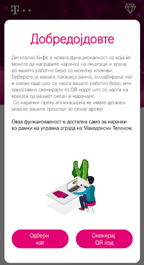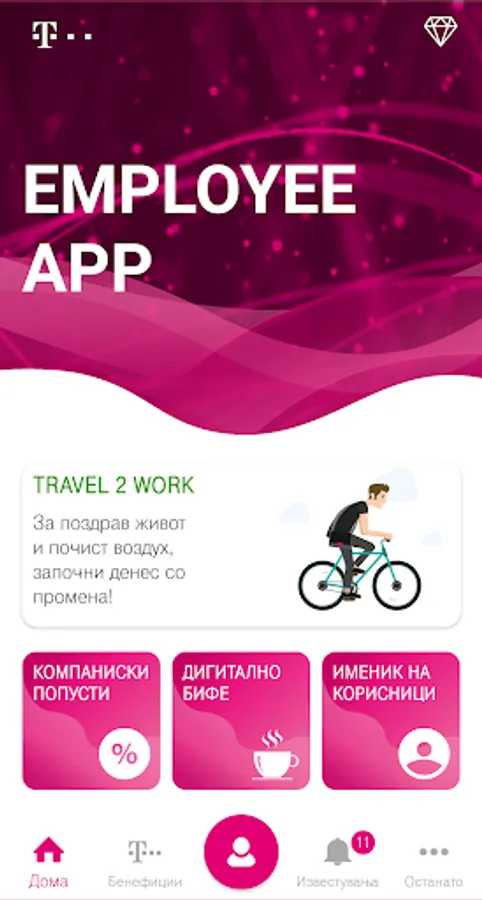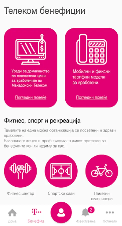 - Панелот за вработени ги содржи сите информации за бенефитите кои се добиваат работејќи во Македонски Телеком. Искусете ги попустите, бенефитите, компаниската ID картичка, интерните и огласите од целата Deutsche Telekom групација. Добивајте известувања за новостите и потсетници од вашата агенда.