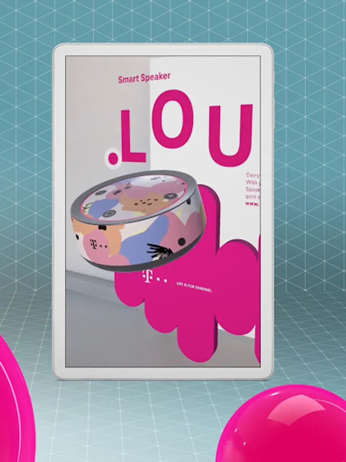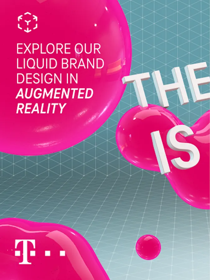 Choose between different topics such as MagentaSport or Smart Speaker and explore the new Liquid Design there. Rearrange the Magenta shapes or headlines, for example, exchange the photo motif and immerse yourself in the spatial elements of the design.