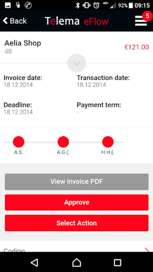 Telema eFlow mobile app enables to approve invoices that have been assigned for you to review. Get notified or go and check the flow yourself.