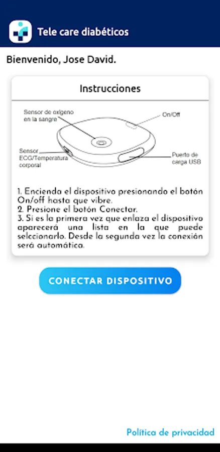 It is used to connect and interact via Bluetooth with the Mintti-Vision medical device, which allows measurement of blood glucose level. The results of the measurements are stored on the TELEMedic platform with the consent of the user.