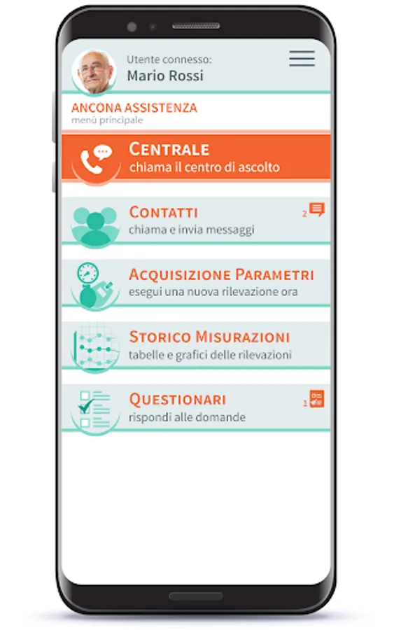 The followed subjects equipped with smartphones or tablets on which the AnconaAssistenza app is installed can connect with the operators of the "Listening Center" to: