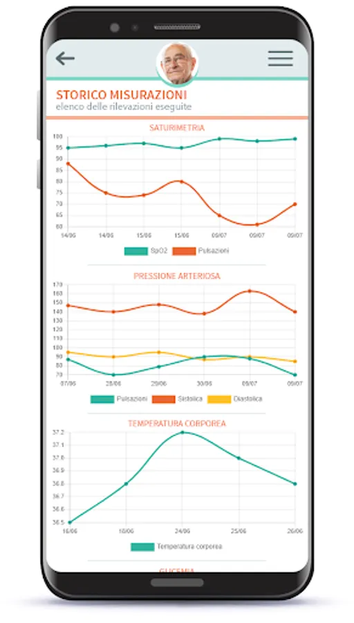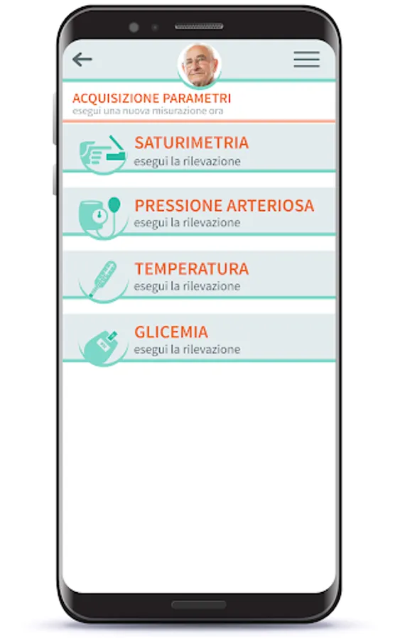 - possibility of making measurements through medical devices that are easy to use and equipped with a Bluetooth connection that communicate directly with the application which in turn automatically transmits the data acquired to the control unit